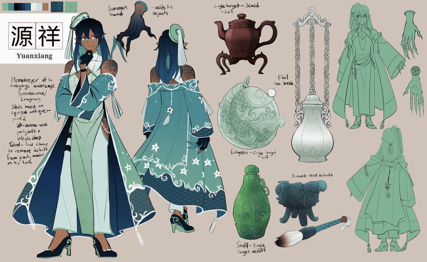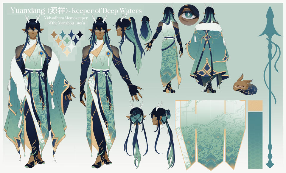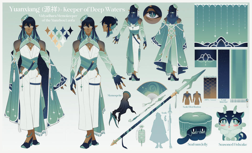 The Vidyadhara are an ancient race, bearing enough legends to match, but there is one rarely spoken to outsiders that tells thus:During rebirth our minds are washed by the sea, and we are renewed in body alike. But where, one might ask, do those memories go? In the depths of our homewaters lies an unseen elder, one who flits between the corals and gathers those discarded dreams. With love, he polishes each into a shining pearl, tucked away in a dragon’s trove that contains the breadth of our history.Do not fear this life’s end, my dear, for it shall be held safe in that garden; may your nightmares be whisked away by that keeper’s gentle hand, replaced with a tranquil rest for your homecoming.IICharacter Page [HSR]
